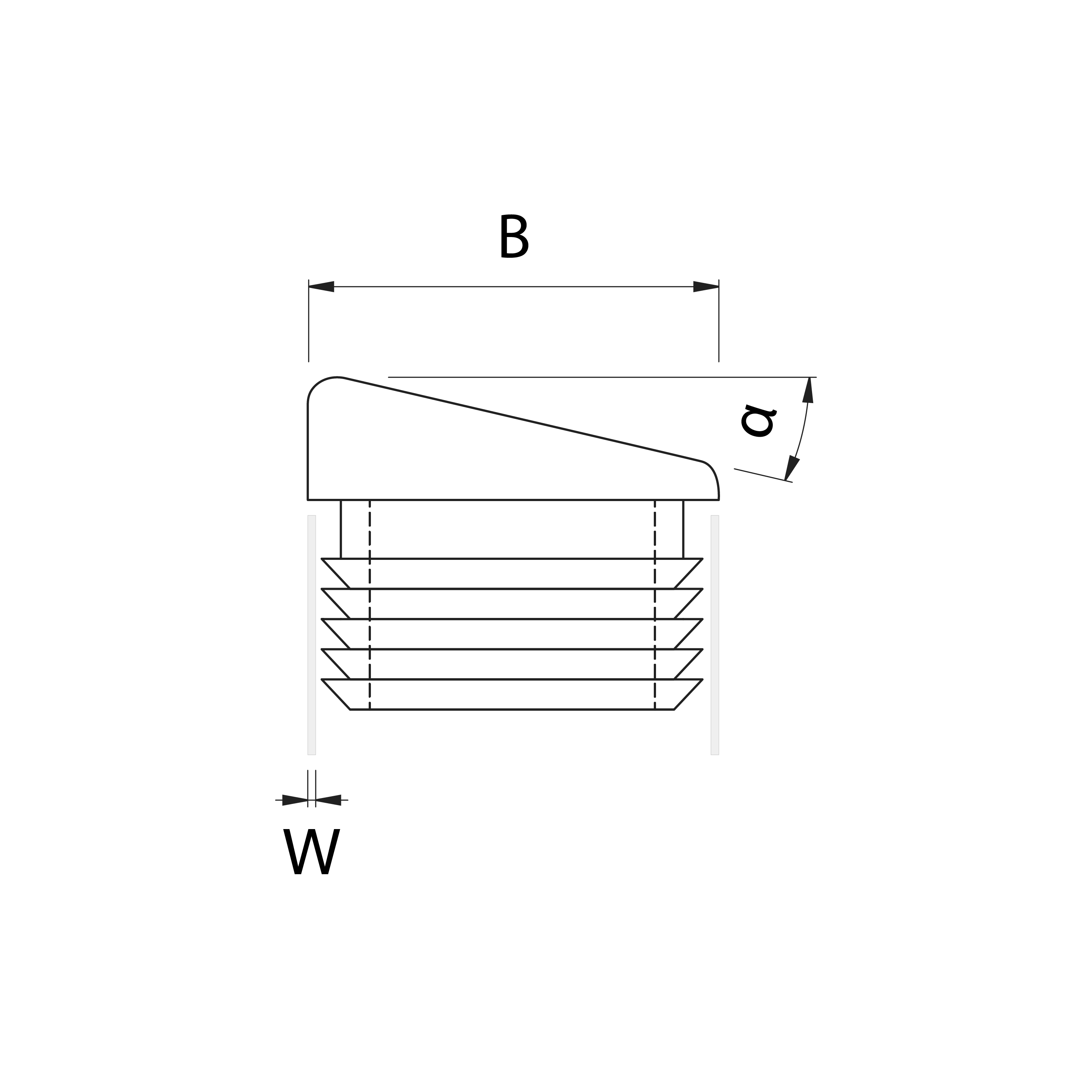 W = 1,0 – 1,5; A (mm) = 25; B (mm) = 20; H (mm) = 5; h (mm) = 12; Kot (°) = 20