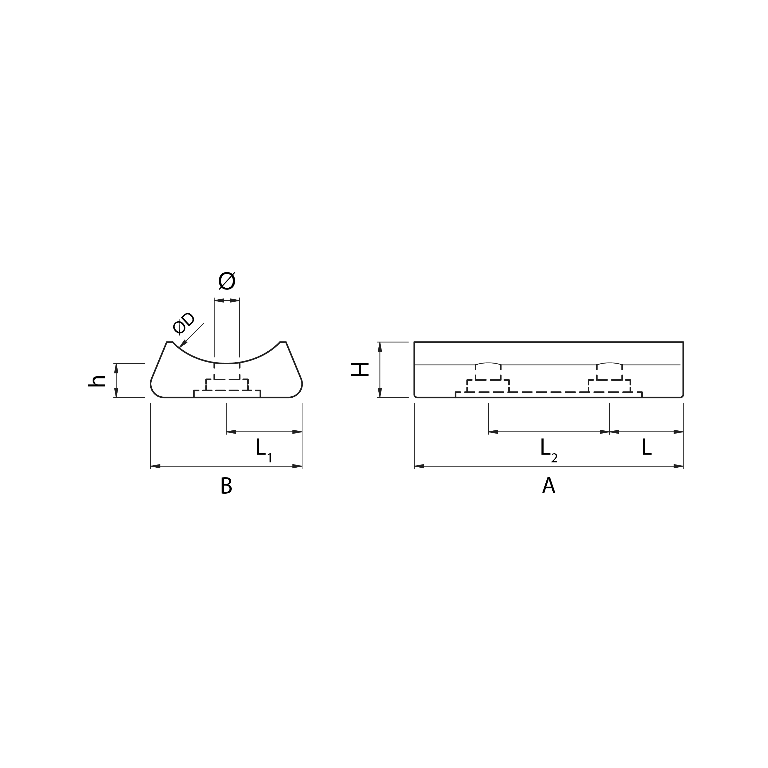fi (mm) = 30; A (mm) = 55; B (mm) = 34; H (mm) = 11,5; h (mm) = 6; L (mm) = 12,5; L2 (mm) = 25