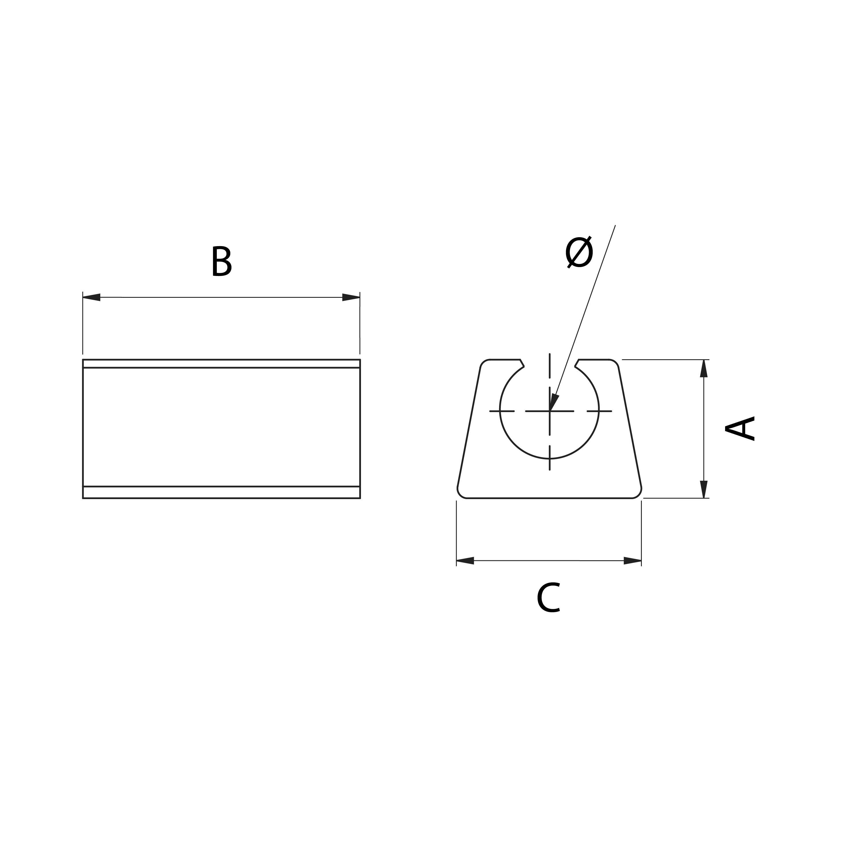 fi (mm) = 9; A (mm) = 14; B (mm) = 28,50; C (mm) = 19; Material = PE